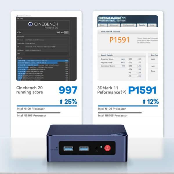 The Beelink Mini S12N100 Dubai Pro Mini-Computer is a powerful, compact device equipped with the latest 12th-generation Intel Alder Lake-N100 processor. This advanced CPU operates at up to 3.4GHz with 4 cores and 4 threads, featuring a 6MB L3 cache and a highly efficient power consumption rate of just 6W. Compared to the Intel N5105 and N5095 CPUs, it boasts over 20% better performance while consuming less power, making it ideal for tasks like everyday business operations, family NAS and FTP servers, and environments such as offices, homes, schools, hospitals, and industries.