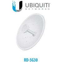 The Ubiquiti RD-5G-30 Dubai features a gain of 30 dBi that helps create a Point-to-Point (PtP) bridge for networking applications when paired with an optional Rocket M BaseStation. It delivers dual-polarity performance and operates in the 5 GHz frequency, which works well for long-distance links. Furthermore, it comes with a shroud, Rocket mount, and pole-mounting support.