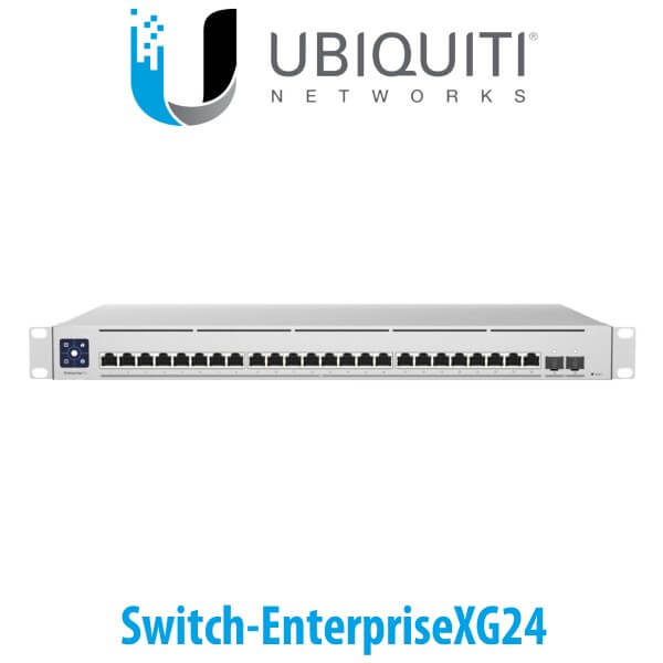 The Ubiquiti Switch-EnterpriseXG24 Dubai is a fully managed, multi-gigabit, Layer 3 switch with (24) 10GbE RJ45 ports and (2) 25G SFP28 ports. The Switch Enterprise XG 24 also features a 1.3″ LCM color touchscreen that concisely displays key system and connection insights.